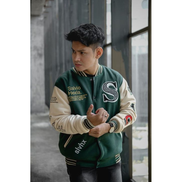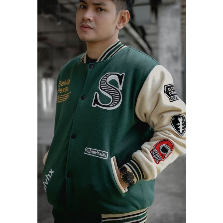 JAKET VARSITY SUNMORI GREEN SALVIO HEXIA - JAKET VINTAGE