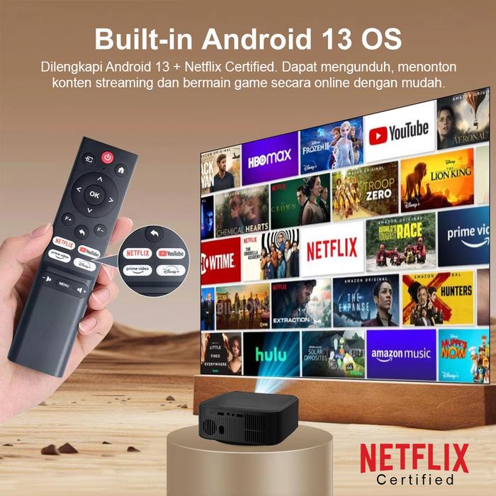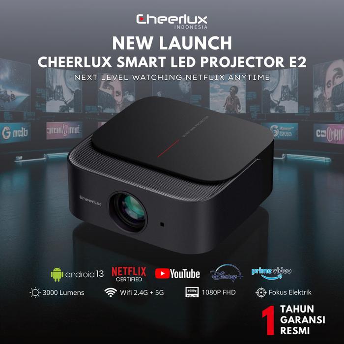 Proyektor Cheerlux E2 Android Wifi Screen Mirroring Ke HP 3000 Lumens Netflix Certified 1080P | Projector Cheerlux E2 Wi