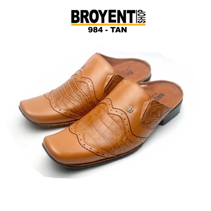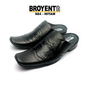 Sepatu sandal pria bustong selop kulit asli sendal motif croco slip on ready sampai big size 44