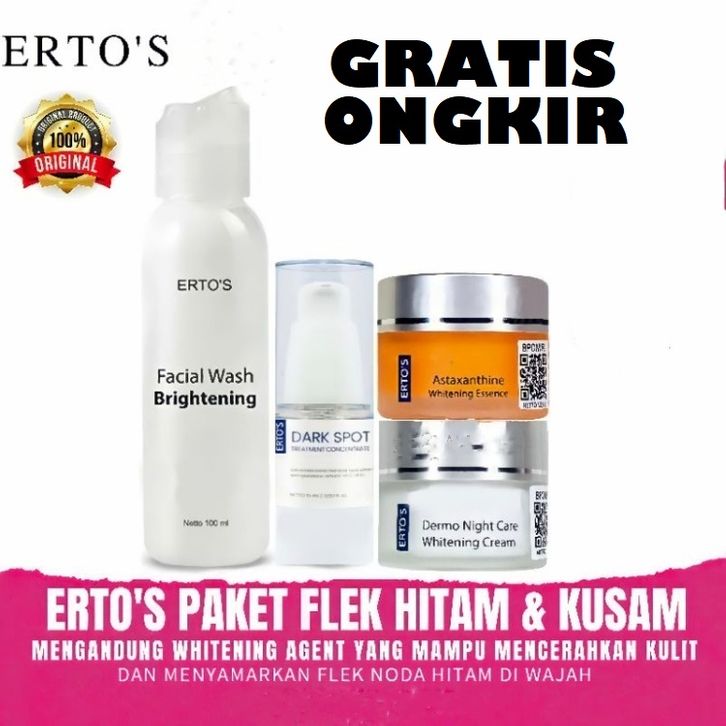 Ertos Paket Penghilang Flek Hitam Membandel - Facial Wash , Night Cream , Astaxanthine , Dark Spot