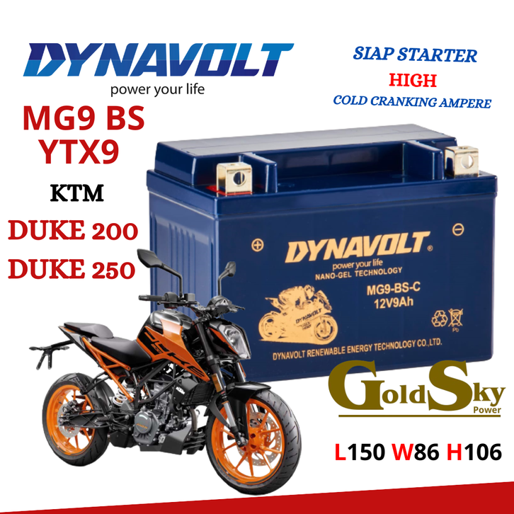 AKI KERING DYNAVOLT KTM DUKE 200 DUKE 250 RC200 RC250 MG9 BS YTX9 YTX10 MBTX9U MF