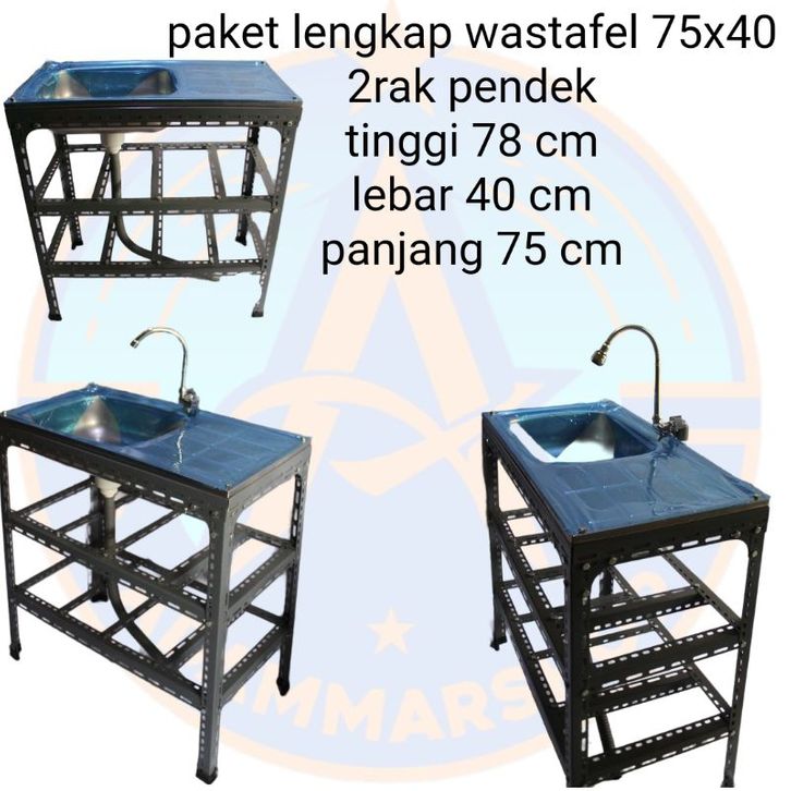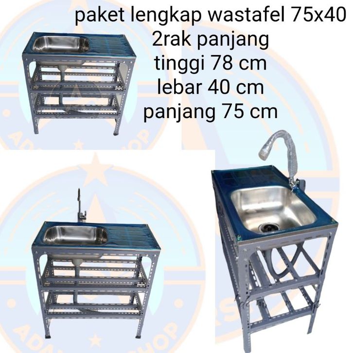 Wastafel portable /Bak Cuci Piring stailess2 rak penyimpanan.75x40