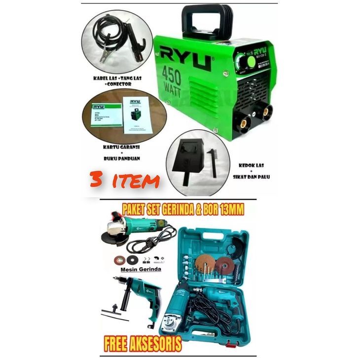FREE ONGKIR FREE KOPER PAKET Hemat 3 ITEM Mesin Las 450 Watt RYU 120a Trafo Travo Las Mesin Gerinda