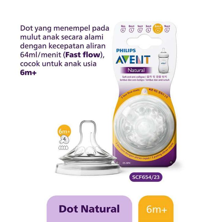 (GRATIS ONGKIR) DOT BOTOL SUSU PHILIPS AVENT TEAT NATURAL FAST FLOW 6M PLUS SCF654-23