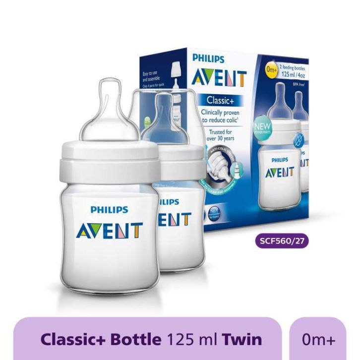 (GRATIS ONGKIR) BOTOL SUSU PHILIPS AVENT CLAS + BABY 2 PCS 125ML NEWBORN FLOW 0M+ SCF560-27 PUTIH