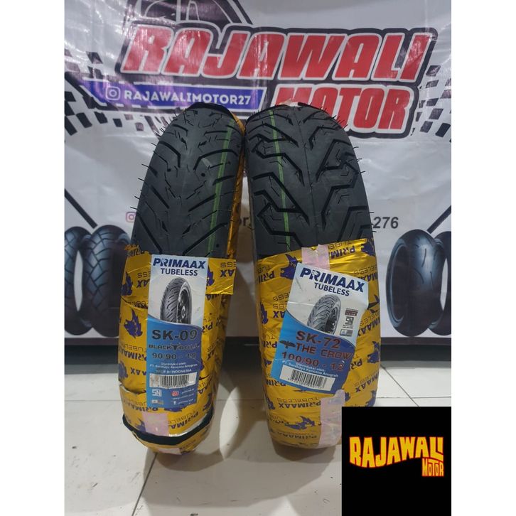 SEPASANG BAN PRIMAAX SK 09 & SK 72 90/90 RING 12 & 100/90 RING 12 TUBLESS UKURAN KECIL(DOWN SIZE)