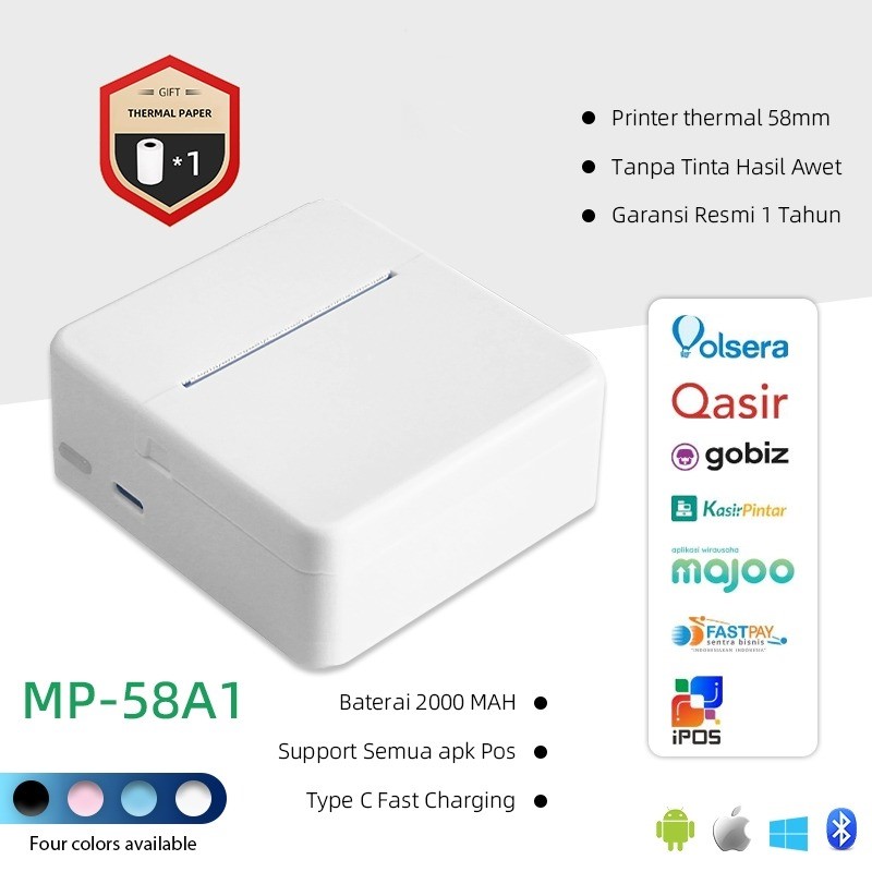PRINTER MINI BLUETOOTH THERMAL PORTABLE 58MM CETAK RESI ALAMAT PENGIRIMAN STRUK KASIR NOTA PENJUALAN TERMAL STIKER 58 MM