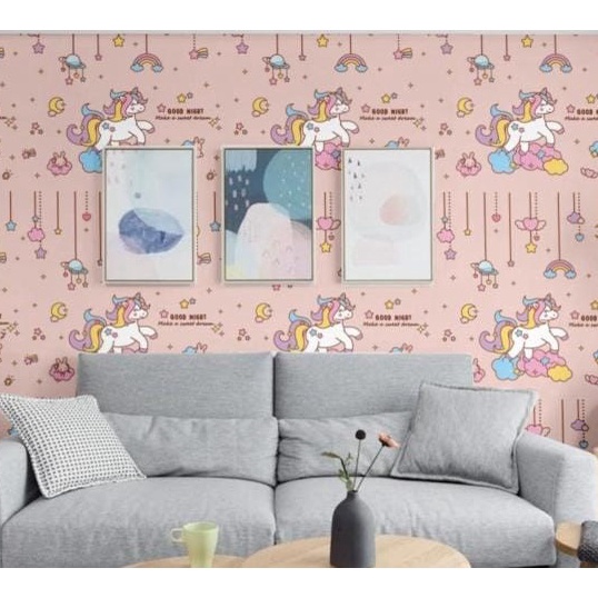 Wallpaper Dinding Sticker Kartun KUDA PONY Ukuran 10 meter x 45 cm