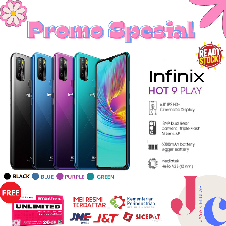 PROMO HP GAMING BATERAI 6000 MAH! INFINIX HOT 9 PLAY RAM 4/64GB BERGARANSI - FREE ONGKIR 2nd (FREE SIM CARD)