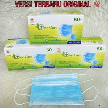 MASKER 3PLY ONE CARE EARLOOP BIRU POLOS ISI 50pcs ORIGINAL KEMENKES