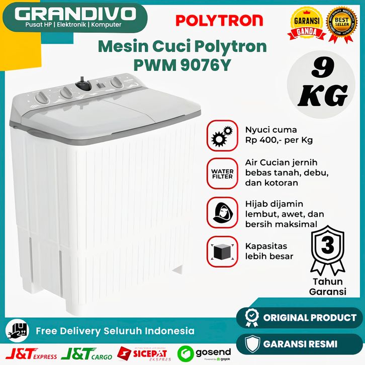 Mesin Cuci Polytron 2 Tabung [8KG 9KG 7 KG] PWM 9076 8076 7073 7076 Garansi Resmi - Grandivo