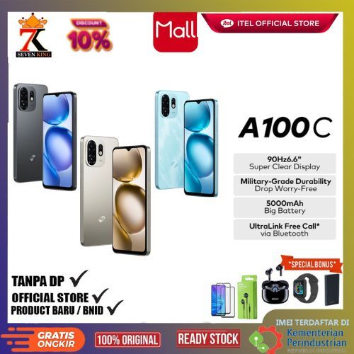 [Official Store ✔️] itel A100C 4+64GB Layar 6.6" 90Hz Tahan Banting Military-Grade Big Memory UltraLink Free Call 5000mA