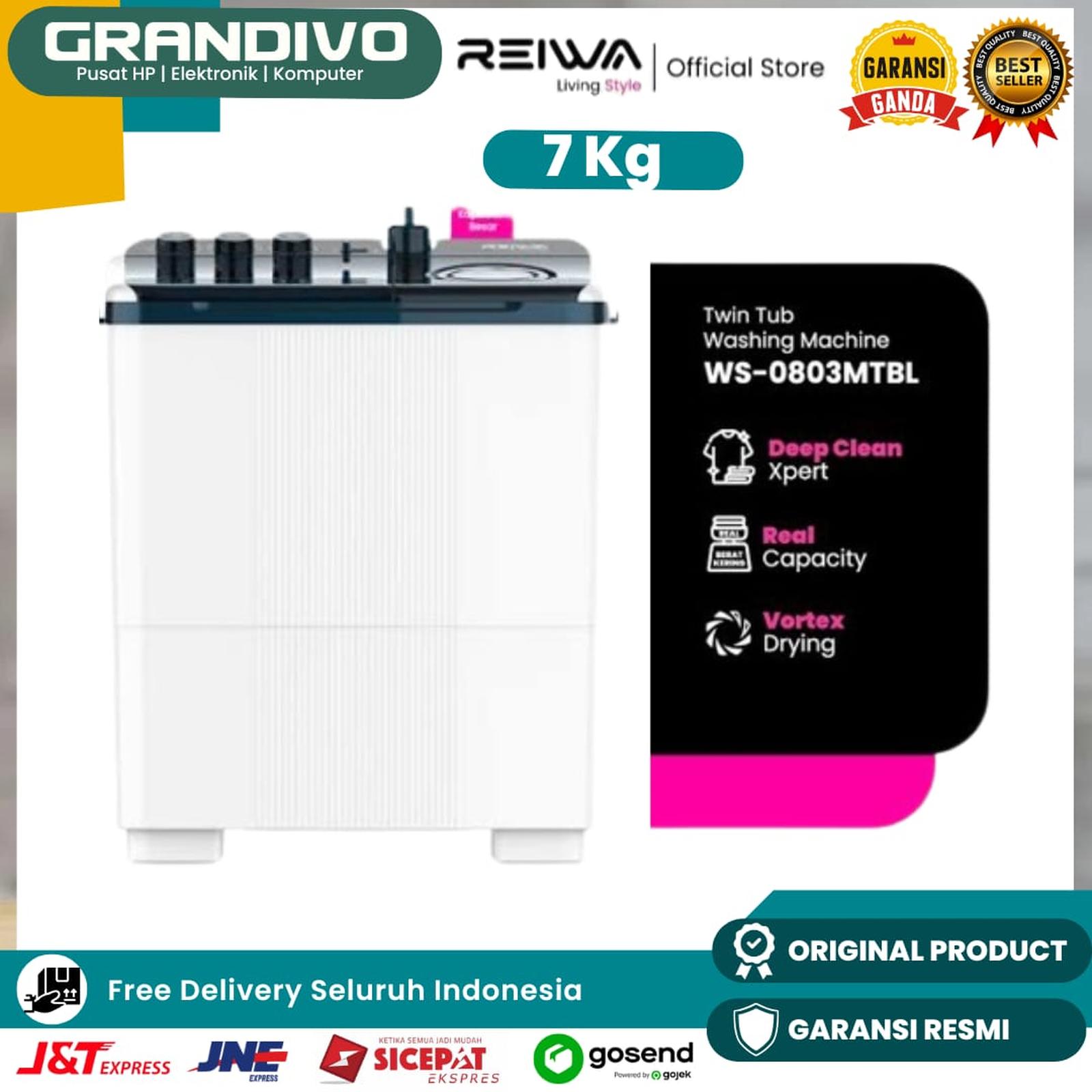 Reiwa Mesin Cuci 2 Tabung 7Kg WS-0803MTBL Midnight Blue Garansi Resmi - Grandivo