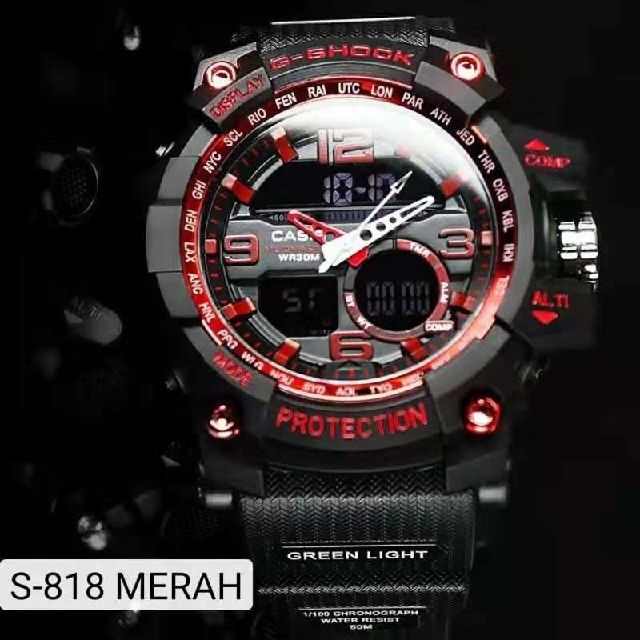 JAM TANGAN PRIA CASIO G-SHOCK DUAL-TIME S-818 ANTI AIR FREE BOX