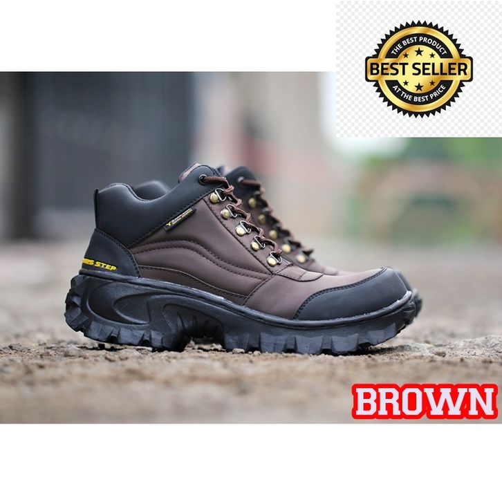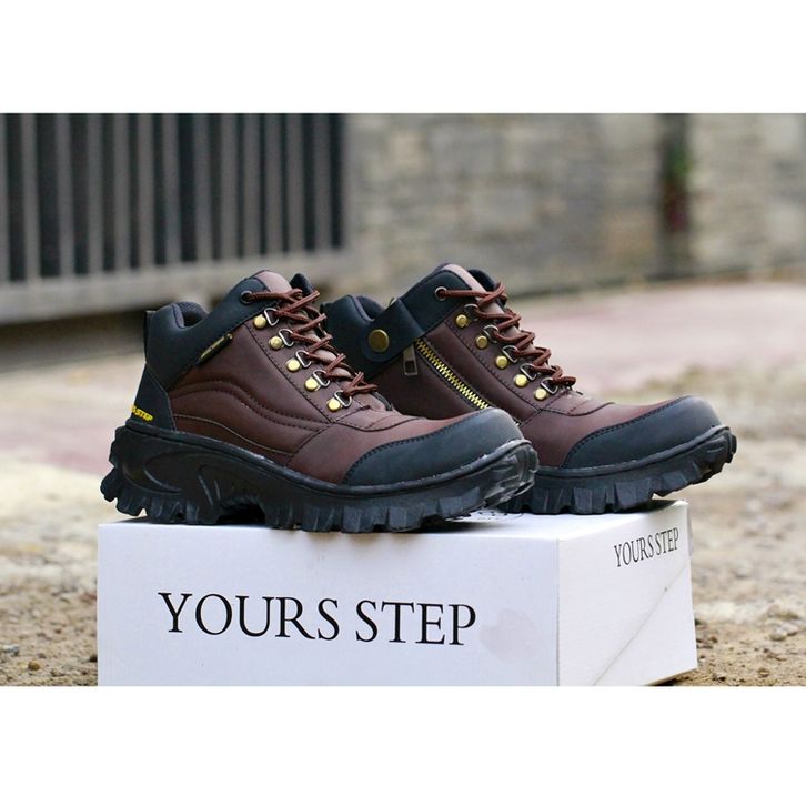 Sepatu Boots Safety Pria Yours Step Worm Brown Original