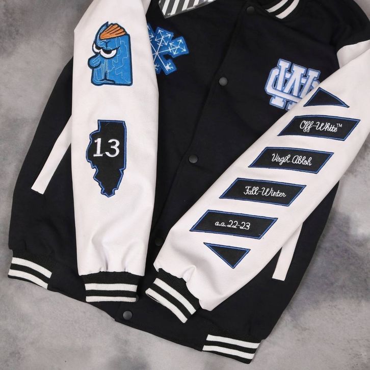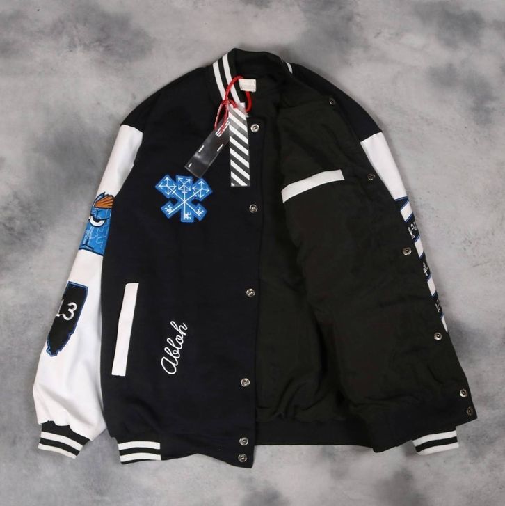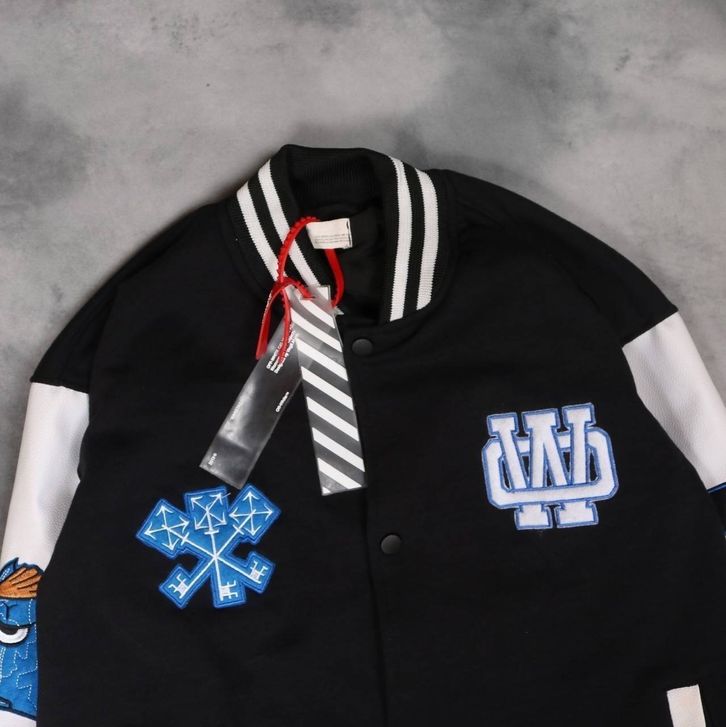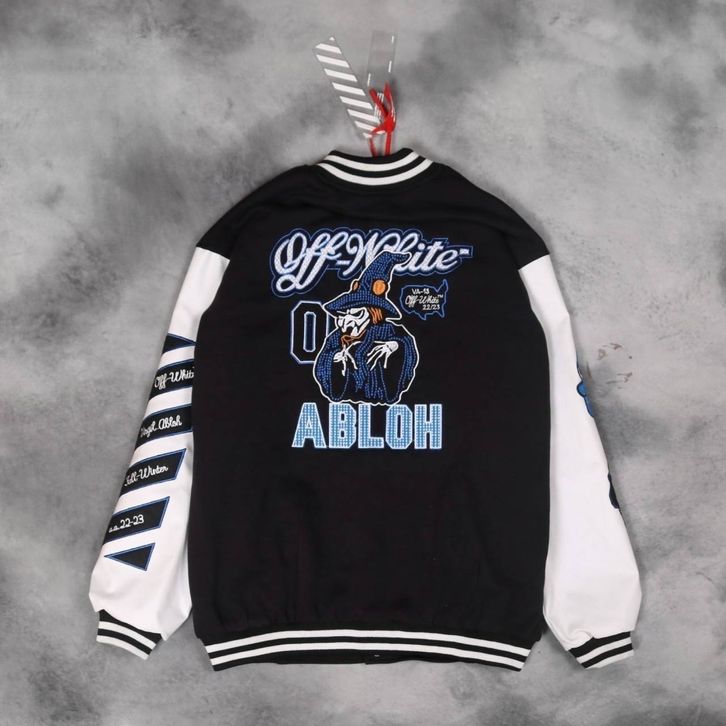 Varsity Pria Wanita Jaket Baseball Off White Whitch Premium Distro