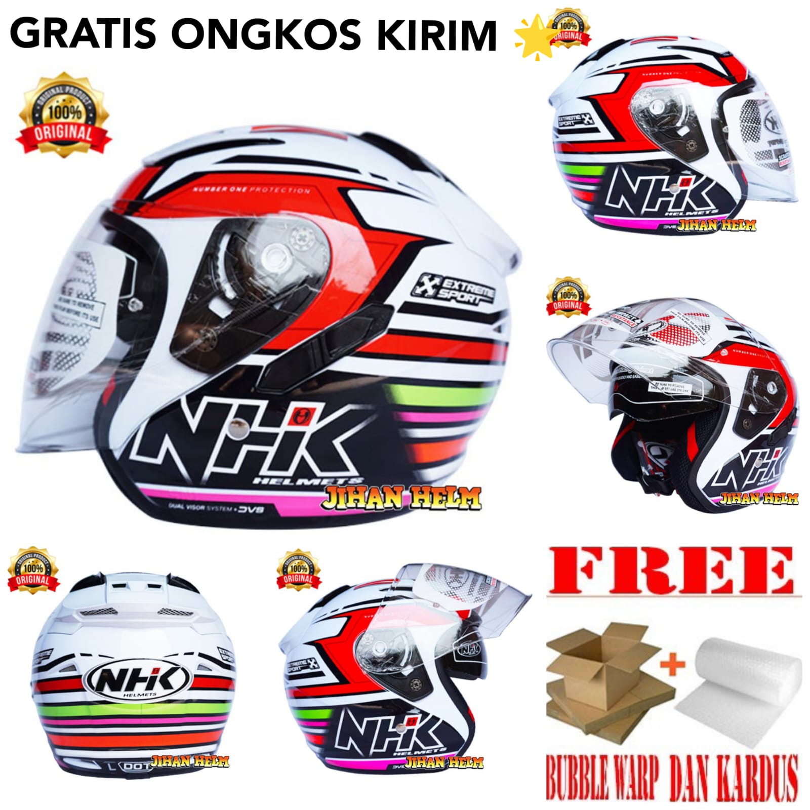 helm nhk / helm nhk r1 rainbown white red terlaris