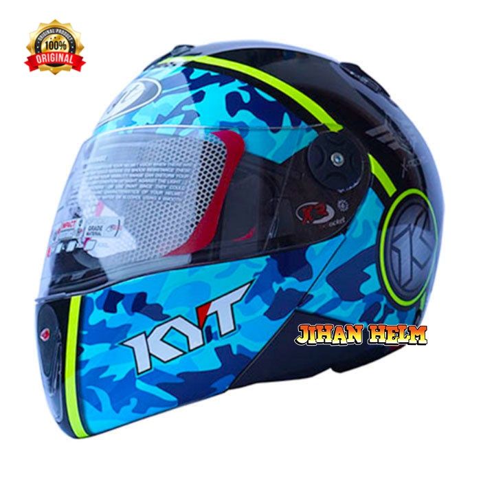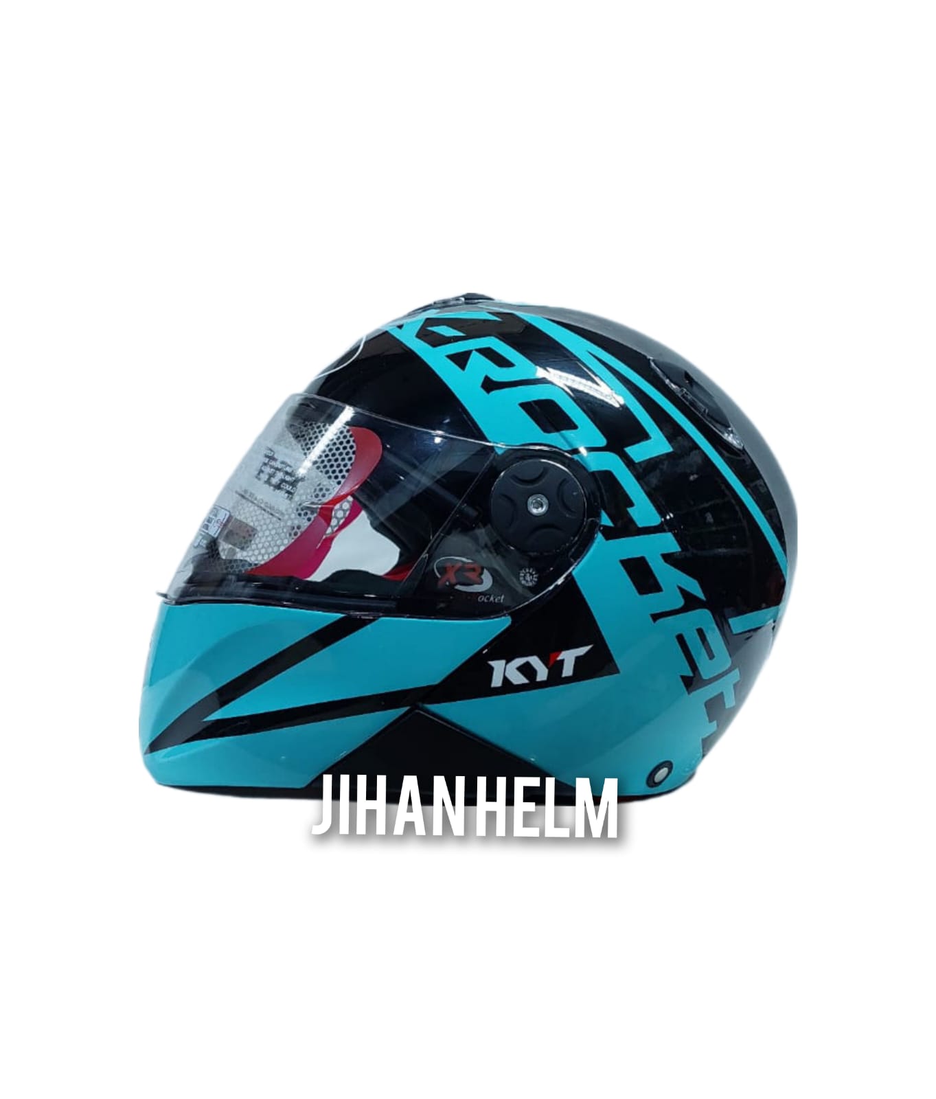 Helm kyt / helm full face kyt x-rocket black green doff original SNI terlaris