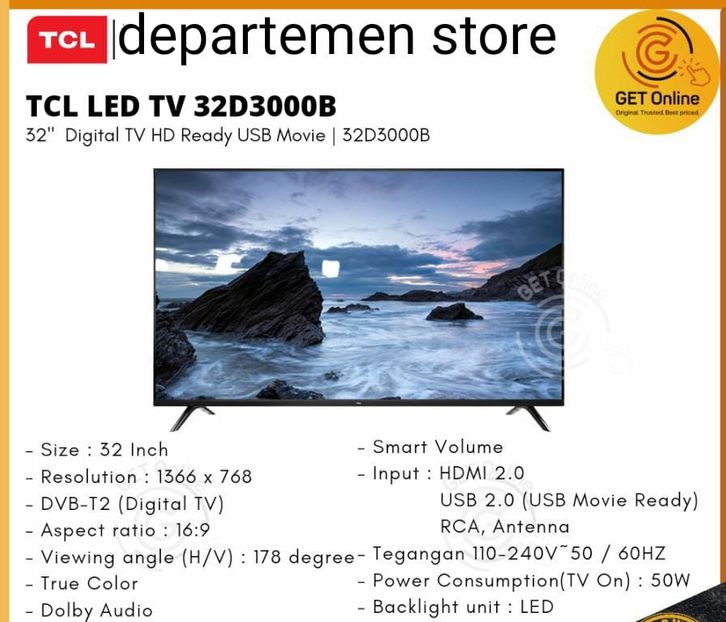 GARANSI RESMI NEW DIGITAL LED TV TCL 32" INCH+PROMO ANTENA DIGITAL