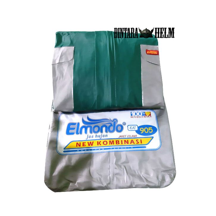 JAS HUJAN ELMONDO NEW KOMBINASI GREEN SILVER ORIGINAL JAS HUJAN CEWEK COWOK JAS HUJAN TERMURAH