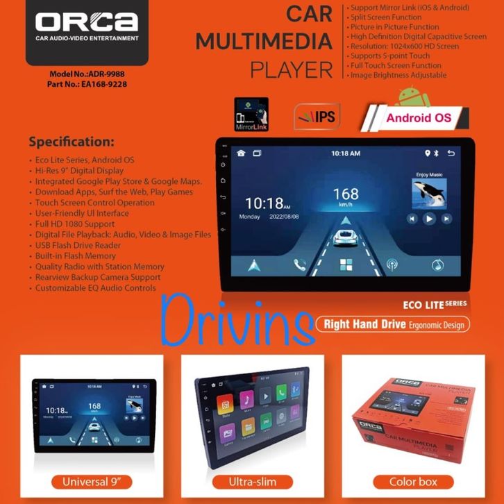 HEAD UNIT DOUBLE DIN ANDROID ORCA ADR-9988 9" INCH/ 10" INCH UNIVERSAL