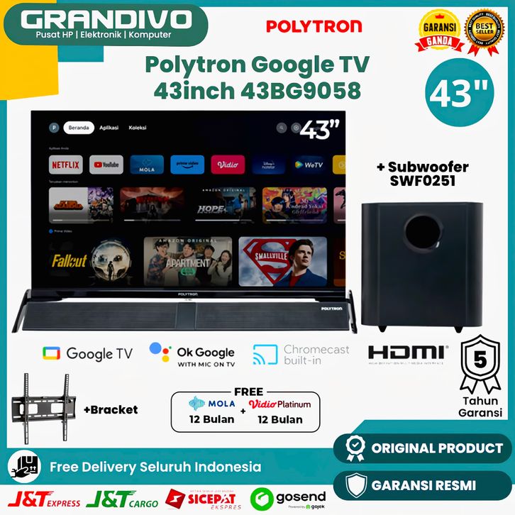 POLYTRON ANDROID TV SOUNDBAR DIGITAL 43BG9058 43 INCH | 32 INCH Garansi Resmi - Grandivo