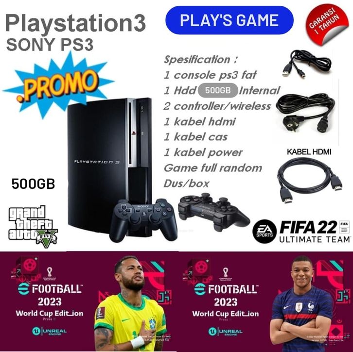 PS3 FAT HDD 80GB+500GB + FULL GAME & BOLA UPDATE 2024 !!!