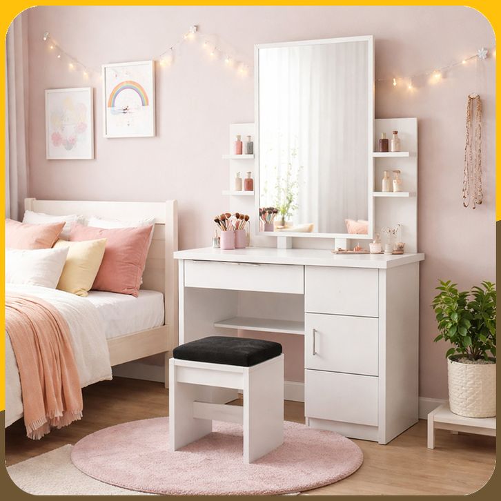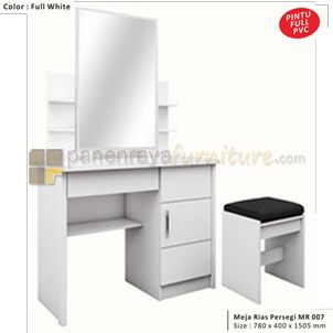 PanenRaya Meja Rias kaca Sliding Kotak atau Oval Graver MR007 Full Putih Plus Puff 78x40x150