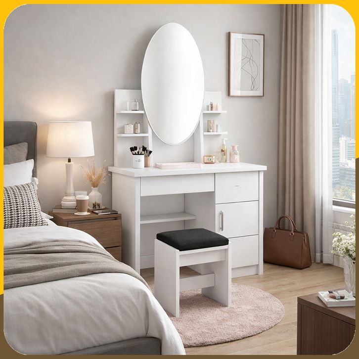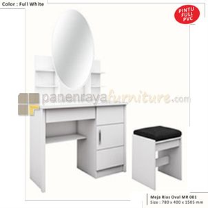 PanenRaya Meja Rias Kaca Sliding Oval atau Kotak Graver MR001 Full Putih Plus Puff 78x40x150
