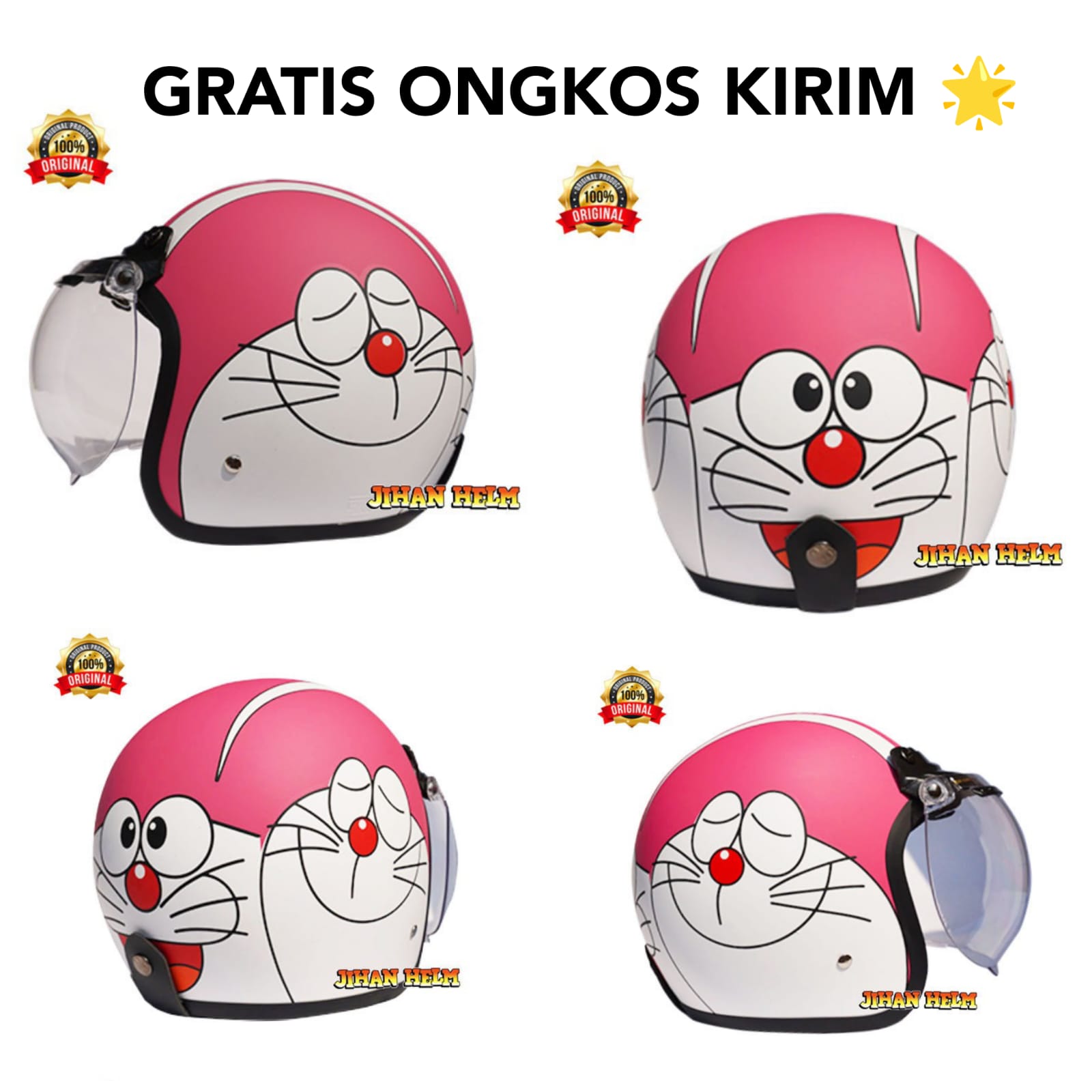 Helm bogo doraemon pink doft kaca cembung terlaris