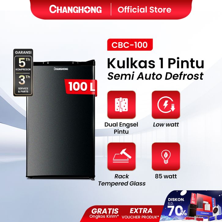 Changhong Kulkas 1 pintu Refrigerator Kapasitas 100 Liter – CBC 100 Black