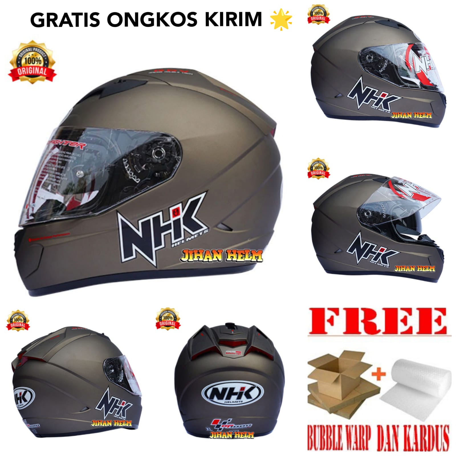 HELM ORIGINAL SNI / Helm full face NHK gp1000 star grey doff original terlaris
