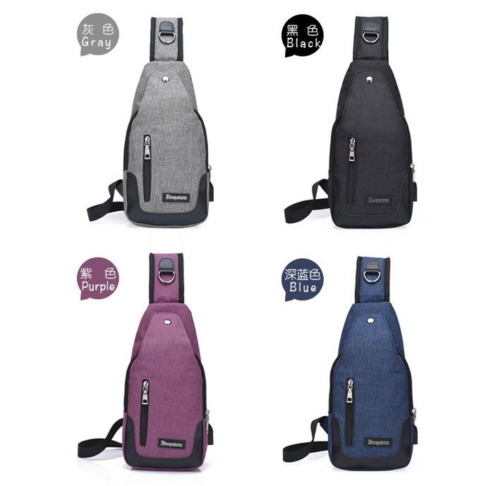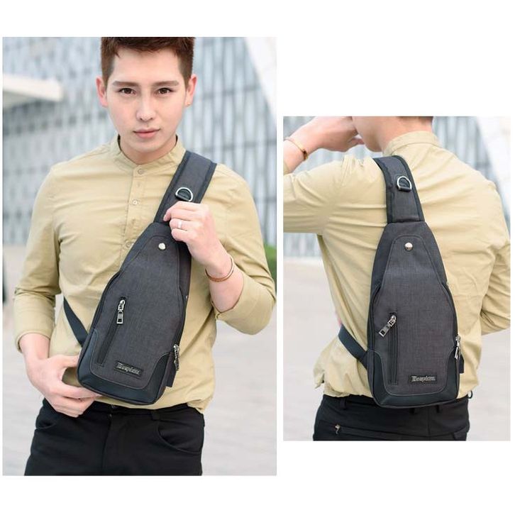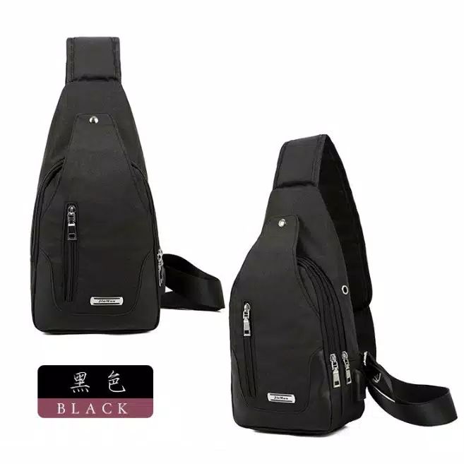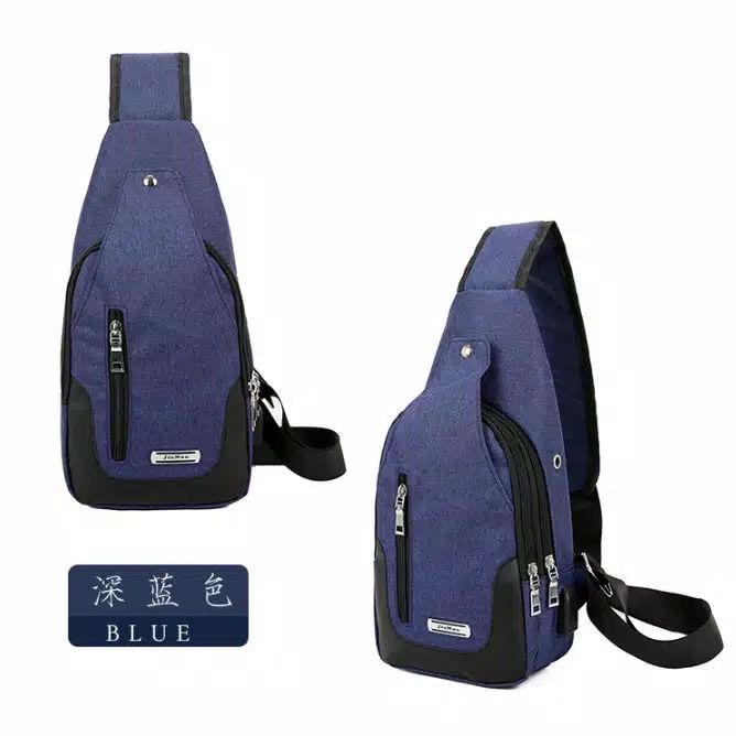Tas Selempang Pria Sling Bag bahan Kanvas ada Colokan USB