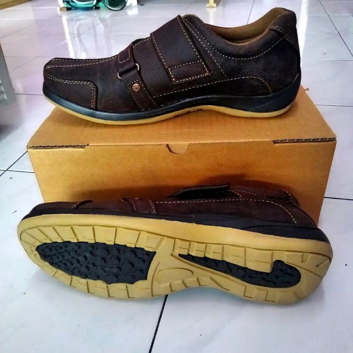 Sepatu casual pria bahan kulit asli warna coklat tua sepatu santai model sneakers santai