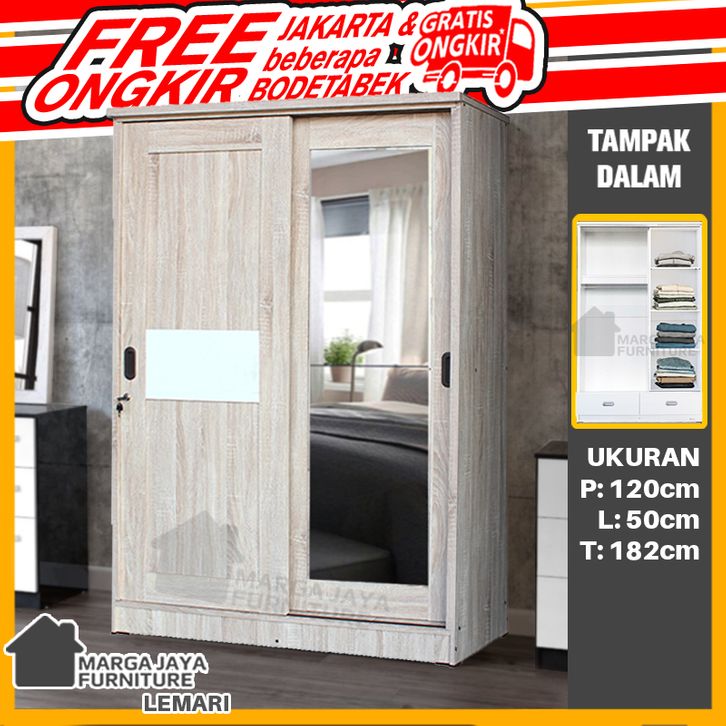 Lemari pakaian 2 pintu sliding coklat minimalis