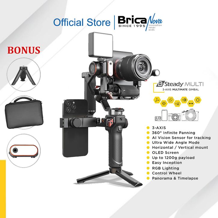 Brica B-Steady MULTIMATE - 3 Axis Mirrorless & Compact Camera Gimbal - Black Free T-Shirt - BSMU