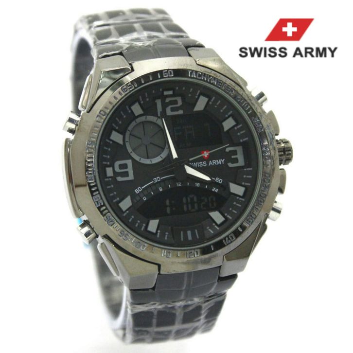 Swiss Army SA7307M Jam tangan Pria Dual Time Stainless Steel