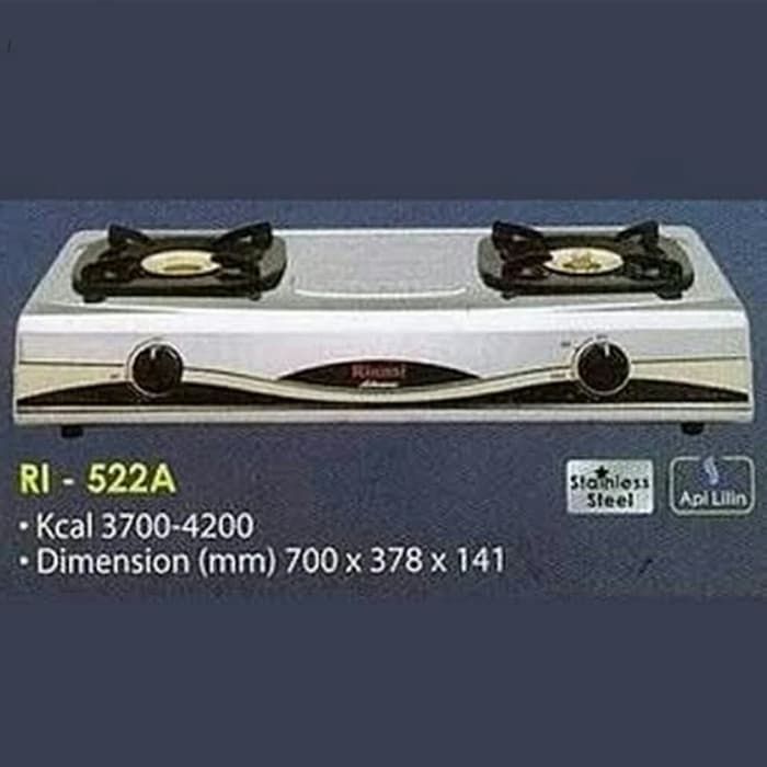 Rinnai RI 522A (Delux) RI-522A - Kompor Gas 2 Tungku Stainless Steel Color