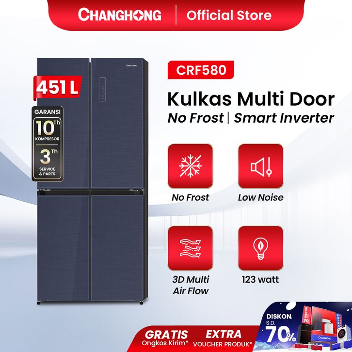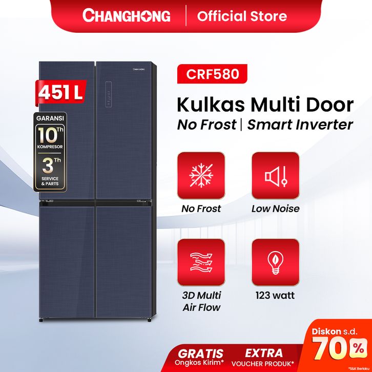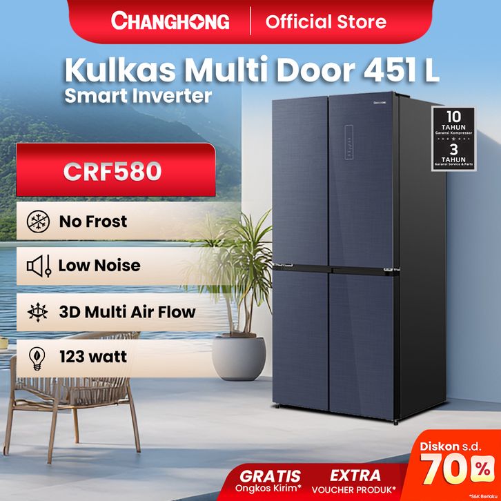 Changhong Kulkas 4 Pintu Glass Door Series Inverter No Frost Refrigerator Kapasitas 451 Liter - CRF580 Black