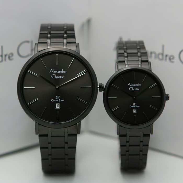 Jam Tangan Couple Alexandre Christie AC 8597 / AC8597 Full Black - Garansi Resmi Alexandre Christie 1 Tahun
