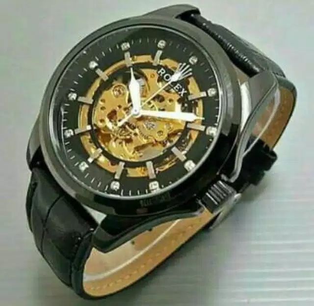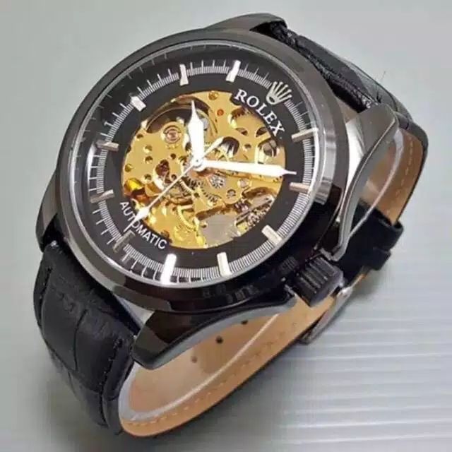 Jam Tangan Pria Rolex Big Skeleton Kulit Fullblack Series