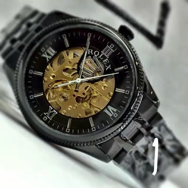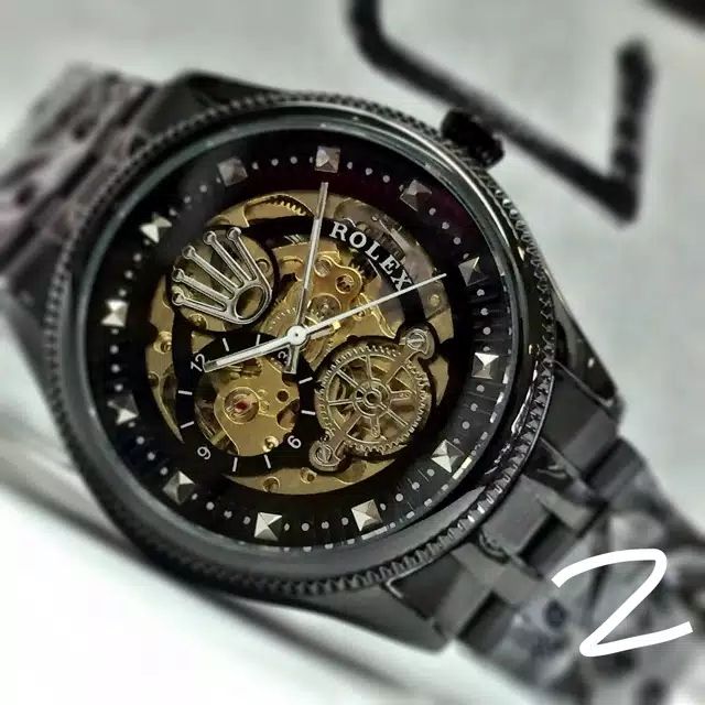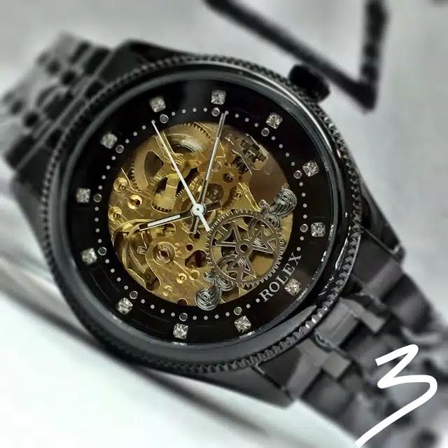 Jam Tangan Pria Rolex Medium Skeleton Automatic Chain Full Black