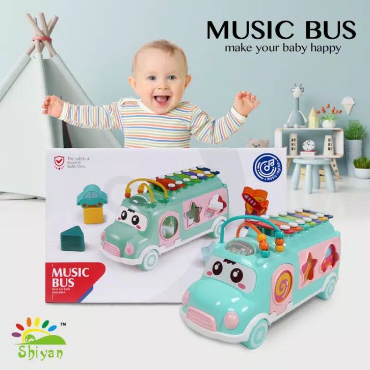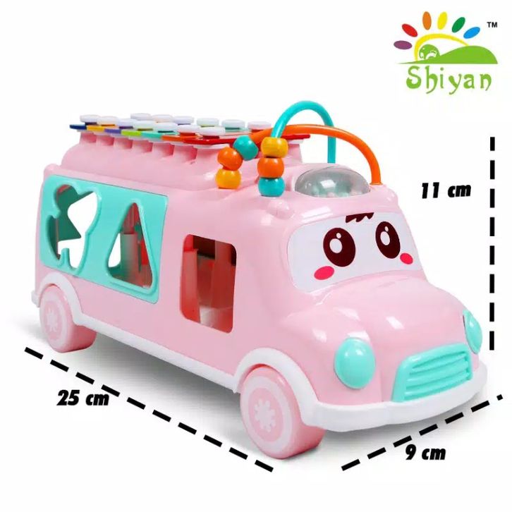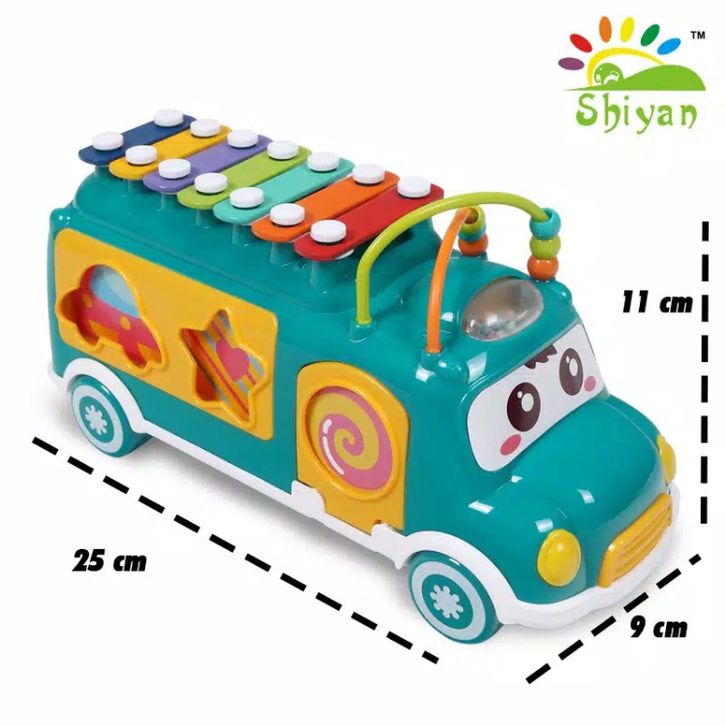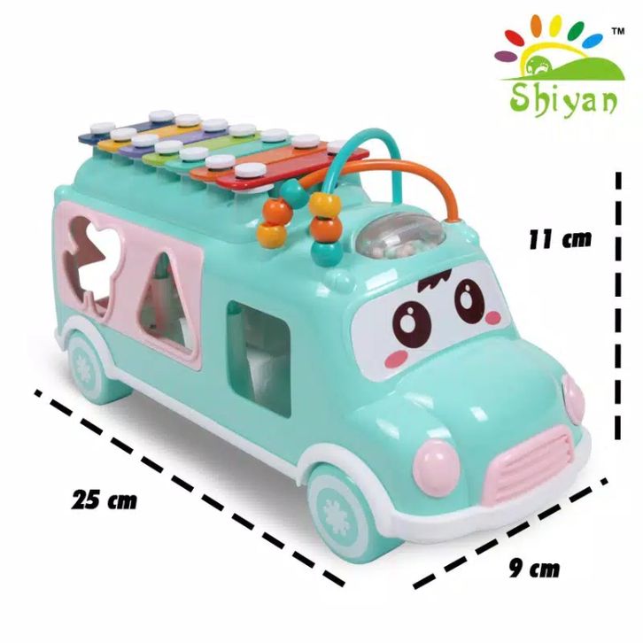 Mainan Edukasi Anak Balita Bentuk Mini Bus Dengan Puzzle 3 in 1 Dengan Xylophone