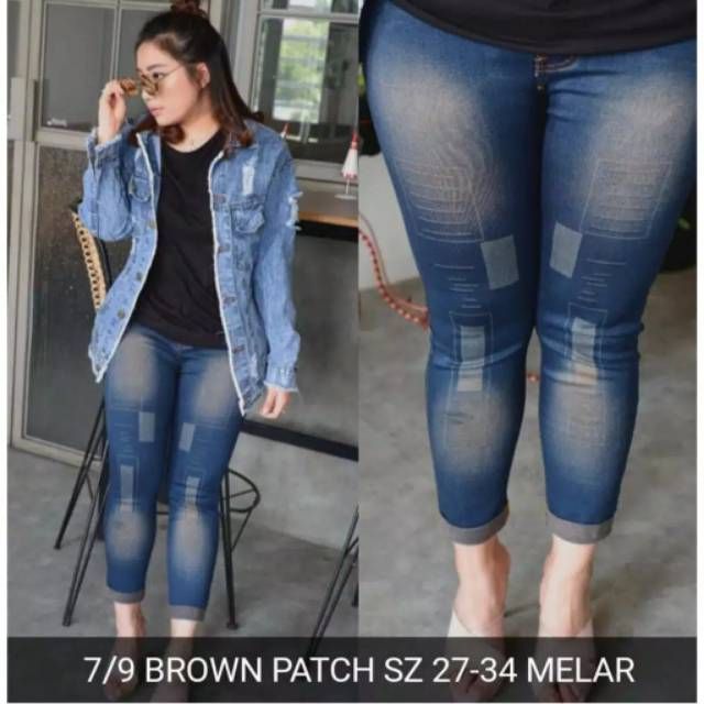 CELANA JEANS WANITA 7/9 / CELANA JEANS WANITA BROWN PATCH / CELANA JEANS WANITA FASHION KEKINIAN