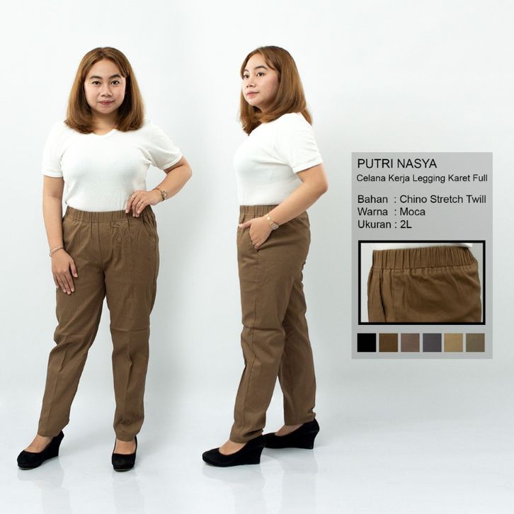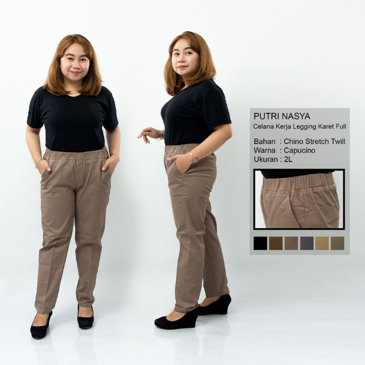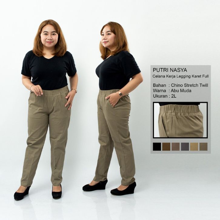 8L,6L,5L,4L,2L,XL, all size, Celana Kerja Kantor Legging Karet Full / Celana Wanita Jumbo / Big size