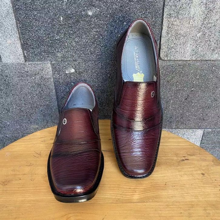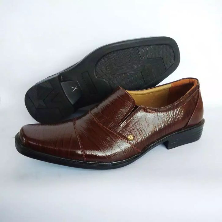 Sepatu pantofel pria bahan kulit sapi asli until kerja Q18 warna coklat dan maroon