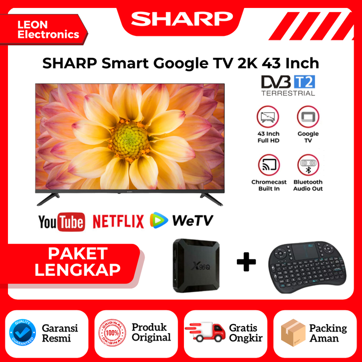 [FREE ONGKIR] SHARP Smart Google TV 2K LED 43 Inch Full HD HDR Bluetooth 2T-C43GH3000i 43GH3000 - Garansi Resmi.