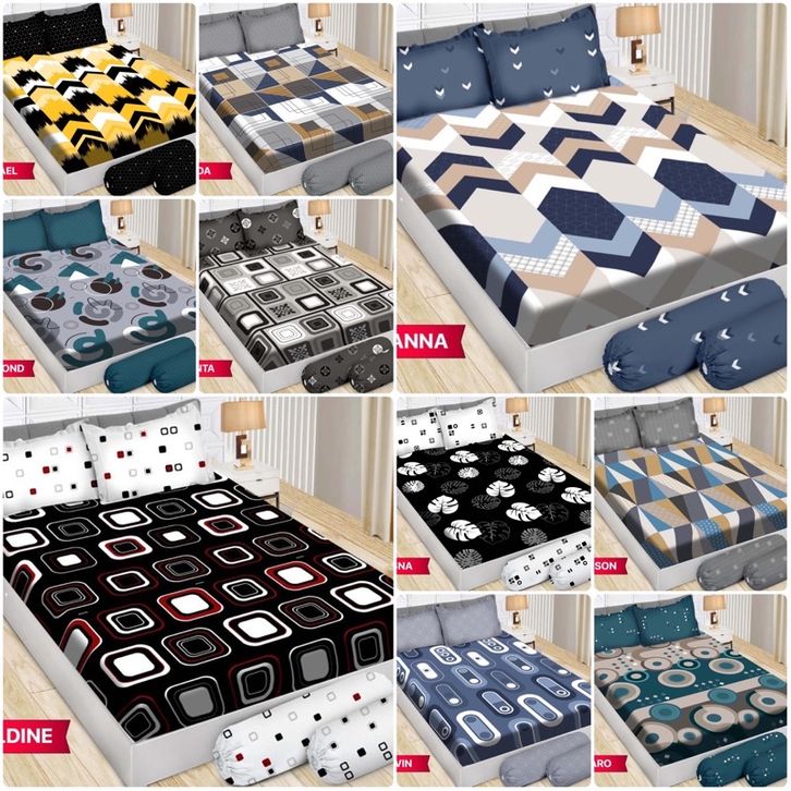 Cubico, Harmoni, Blue rose, Starlight, Bt21 funny, Hanifah, merry, Rania, Rosabella, Amirah, Lovely wedding, Red wood, Elnara, Bt21 lovely, Lydia, Jungle park, Bellona, Laguna, Ashanty, Yuliana, Green tulip, Madison, Java teddy, Kresna, Geraldine, Nova, Mariana, Lusiana, Oktavia, Sweet rose, Butterfly, Panda, Davina, Yuni, Lyodra, Rosalina, Green lily, Sherly, Fony, Maya, Sweet heart, Unicorn cute, Mexico, Cute flamingo, Kimberly, Weny, Teresa, Pink paris, Emilia, Promo sprei bonita paulina