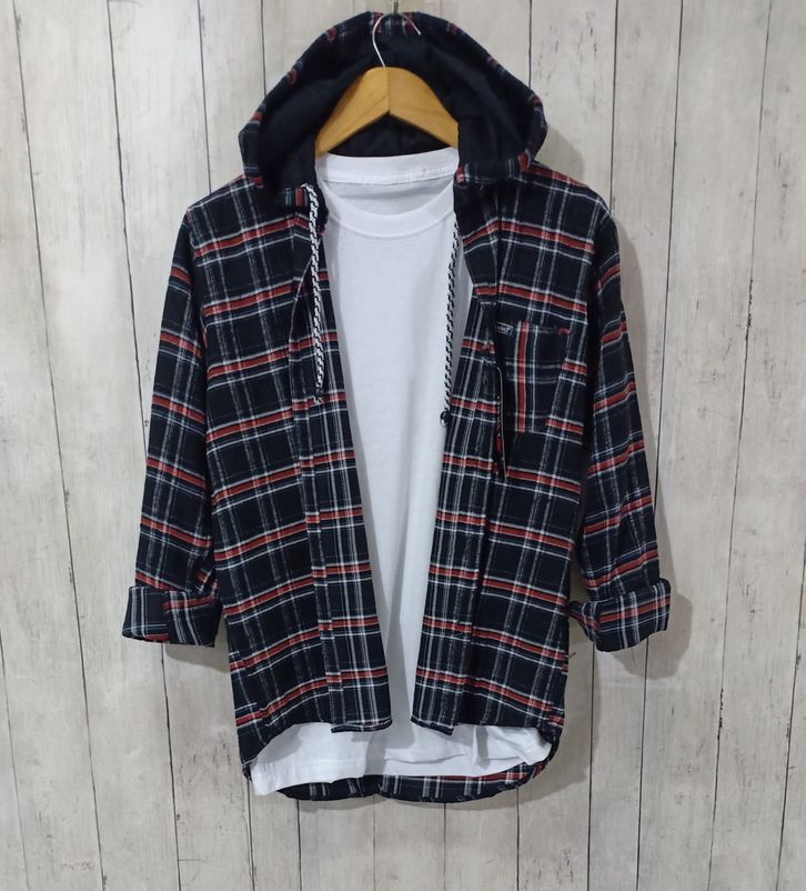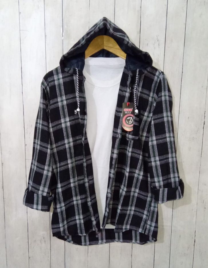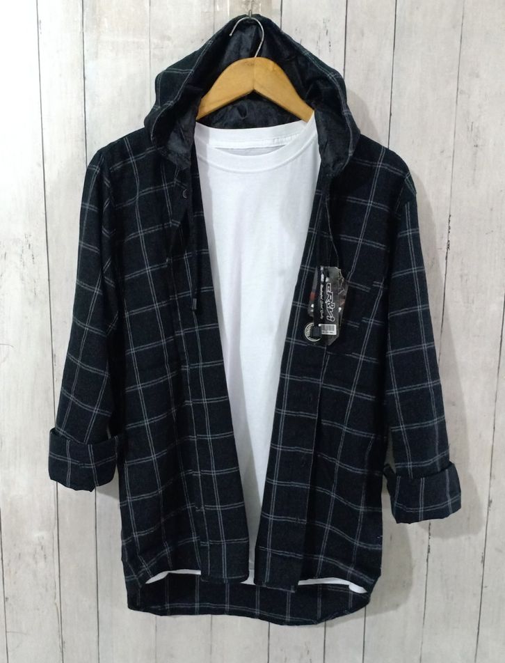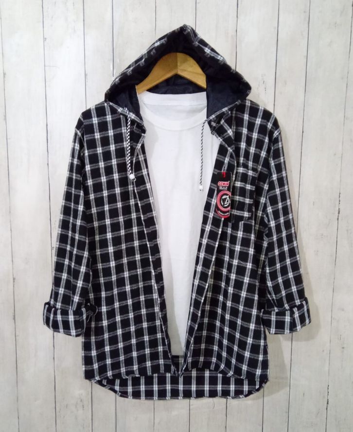 Kemeja Hoodie Flanel Premium Panjang Pria Motif