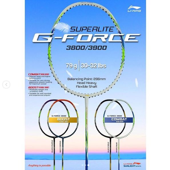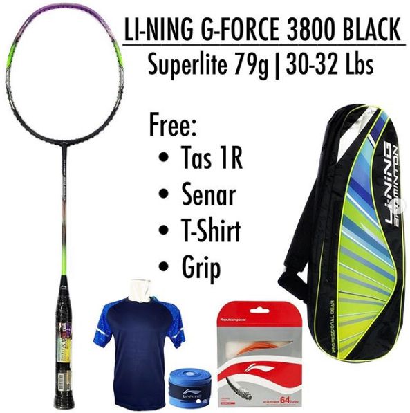 Raket Badminton Li-Ning G Force 3800 Superlite Black Original Free Tas + Senar Ap64 + Kaos + Grip [Adha Sport]